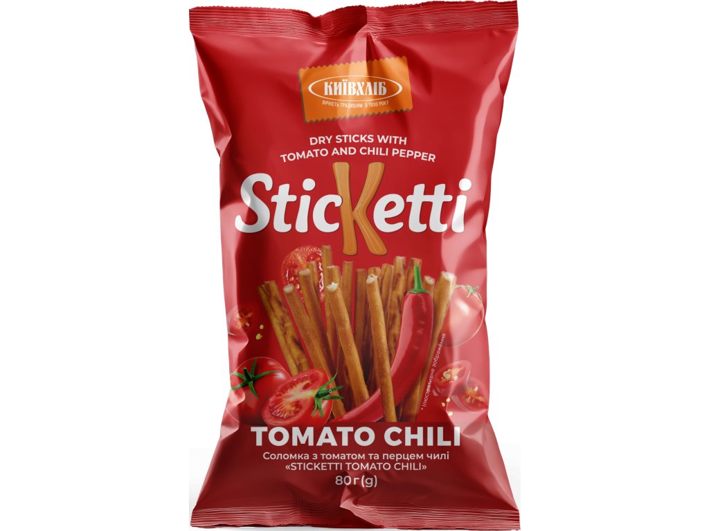 Kyjevchleb "Sticketti" ,tyčinky s příchutí rajčat a chilli papričkou 80g(1/40)1bal = 40 ks