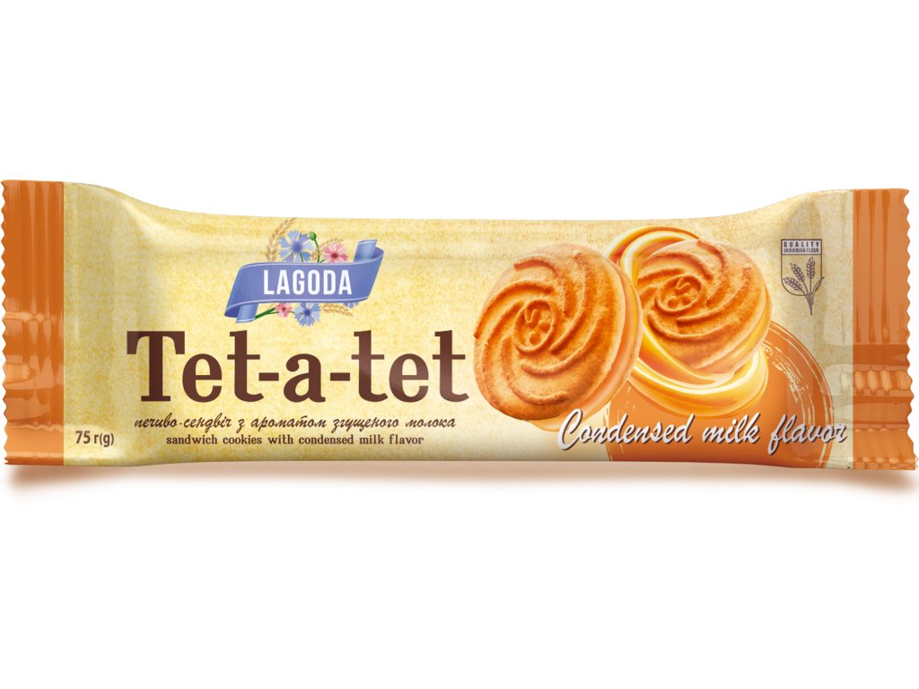 Lagoda "Tet-a-tet", sušenkový sendvič s aroma kondenzovaného mléka 75g(1/24kus)