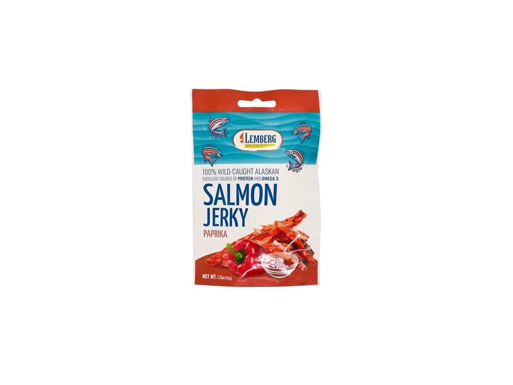 Lemberg Proužky sušeného, soleného filetu z lososa s paprikou 42g1bal = 20 ks