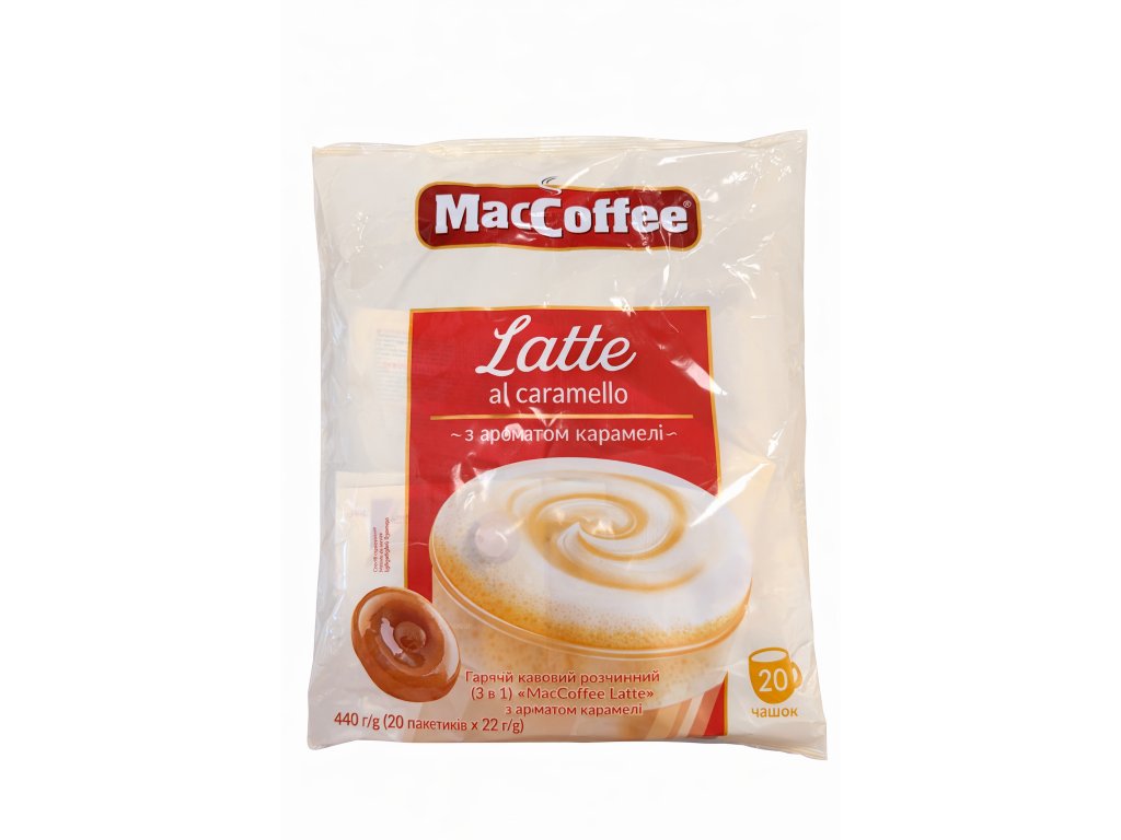 MacCoffee Instantní kávový nápoj 3v1"Latte s příchutí karamelu" 440g (20x22g)