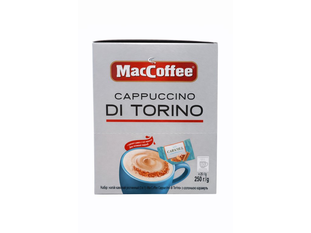 MacCoffee rozpustná káva "Cappuccino di Torino" 3v1 se slaným karamelem 250g (10x25g)1bal = 20 ks
