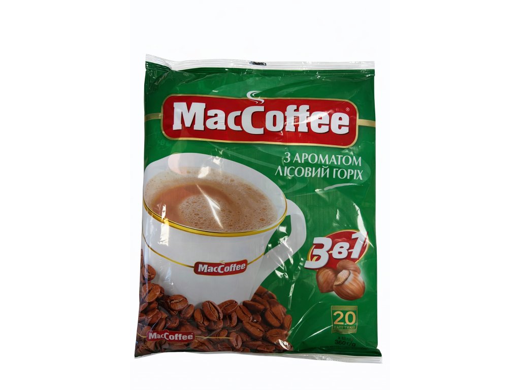 MacCoffee rozpustná káva s příchutí lískového oříšku 3v1 360g (20x18g)