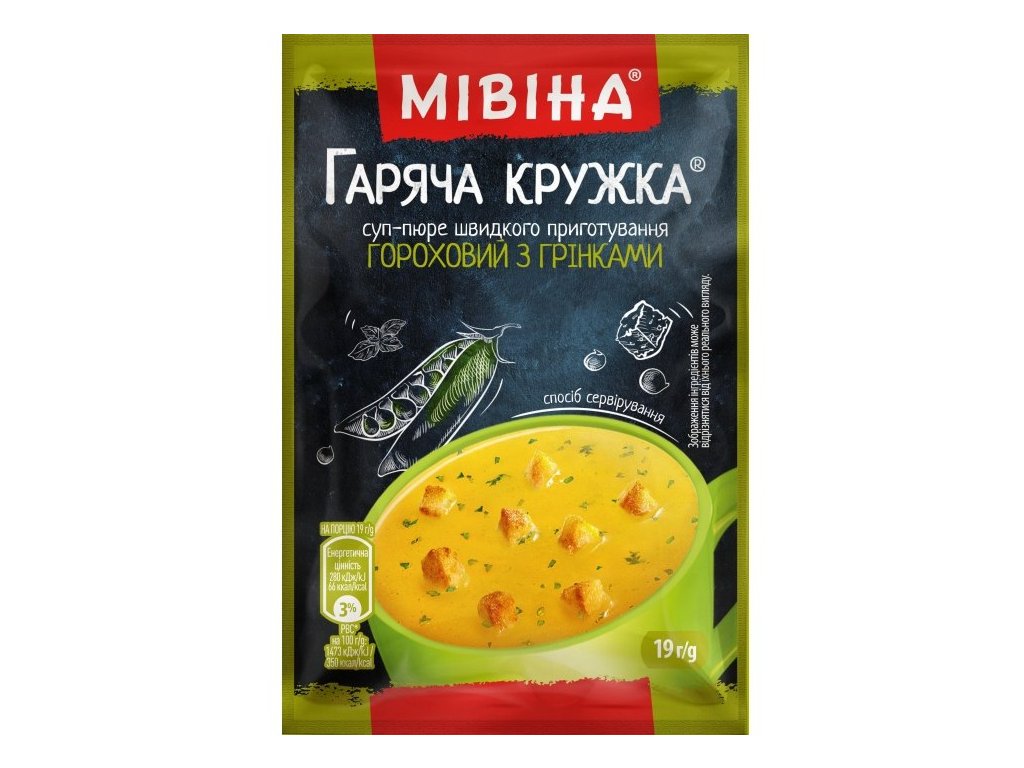 Mivina Horký hrnek instantní krémová hrachová polévka s krutony 19g1bal = 32 ks