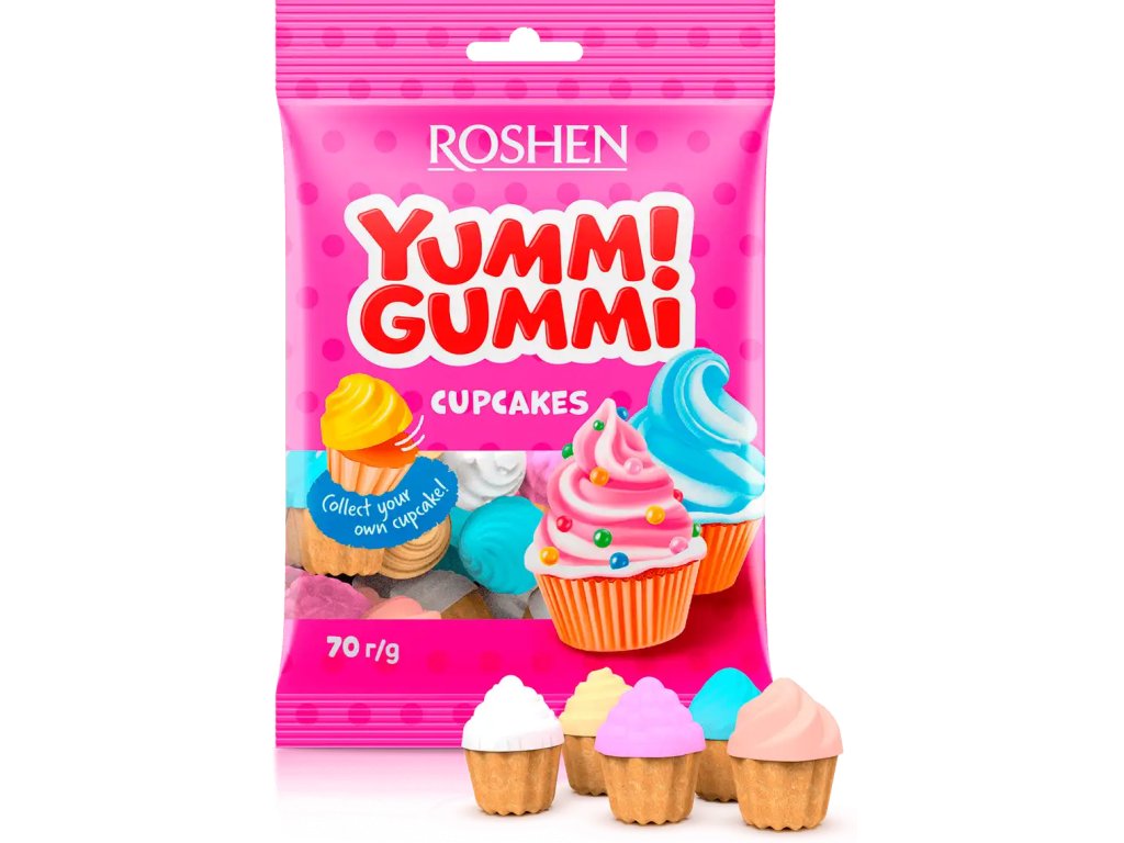 Roshen Bonbony "Yummi Gummi CupCakes", želé s ovocnými příchutěmi a jogurtem 70g1bal = 22 ks