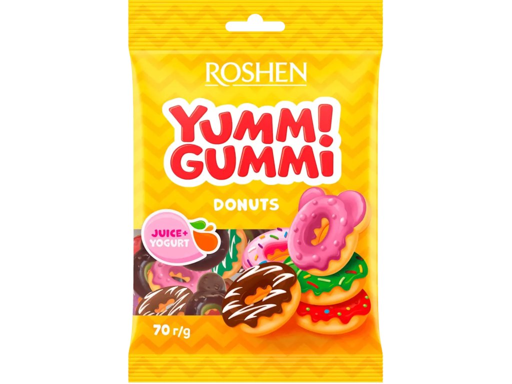 Roshen Bonbony "Yummi Gummi Donuts", želé s ovocnými příchutěmi a jogurtem 70g1bal = 22 ks