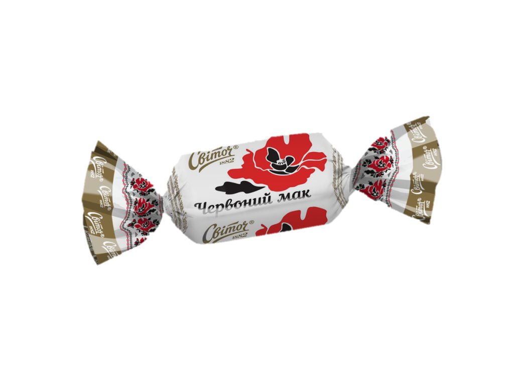 Svitoč Bonbony Krasny Mak 3kg. Složení:cukr, rostlinné tuky (palmový olej, bambucké máslo, olej z palmových jader), pšeničná mouka (obsahuje lepek), kakaový prášek s nízkým obsahem tuku, mandle, arašídy, emulgátory (slunečnicový lecitin, E476), kuchyňská sůl, aroma, soda. Obsahují mléko, jiné ořechy, sóju a sezamová semínka.Energetická hodnota v 100g produktu: 2097kJ/501kcal.Tuky-25g,z toho nasycené mástné kyseliny-13g,sacharidy-61g,z toho cukr-47g,vlaknina-4,1g,bilkoviny-5,3g,sůl-0,14g.Země původu:Ukrajina.1bal = 3 ks